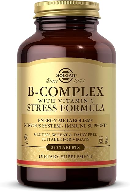 Amazon Com Solgar B Complex With Vitamin C Stress Formula 250 Tablets Energy Metabolism Nervous System Immune Support Non Gmo Vegan Gluten Free Dairy Free Kosher Halal 125 Servings Health